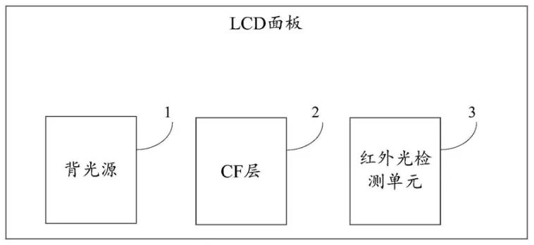 背光源用于為LCD面板提供充足的亮度與分布均勻的平面光源,使得LCD面板能夠正常顯示畫面。由于LCD面板中的各個(gè)組件對(duì)紅外光有較高的透過率,因此背光源中的紅外燈11發(fā)射的紅外光可以順利穿透該LCD面板到達(dá)手指。